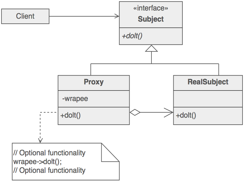 By defining a Subject interface, the presence of the Proxy object standing in place of the RealSubject is transparent to the client.